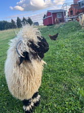 Kaiser is a Purebred Valais Blacknose ram who now resides in Victor, NY in the heart of the famous Fingerlakes of Western New York. He is available for breeding services, and his offspring will be available staring in the spring of 2024. Kaiser has maximum points and championship lineage all throughout his family tree, and is as beautiful and friendly a ram as you could hope for.